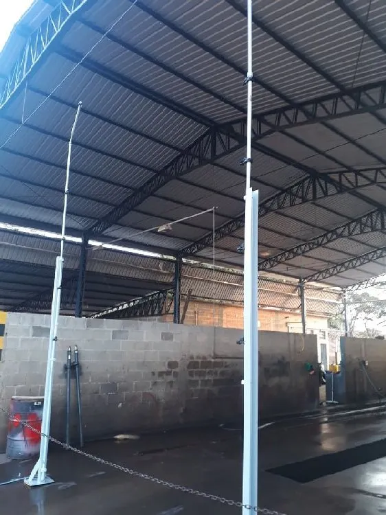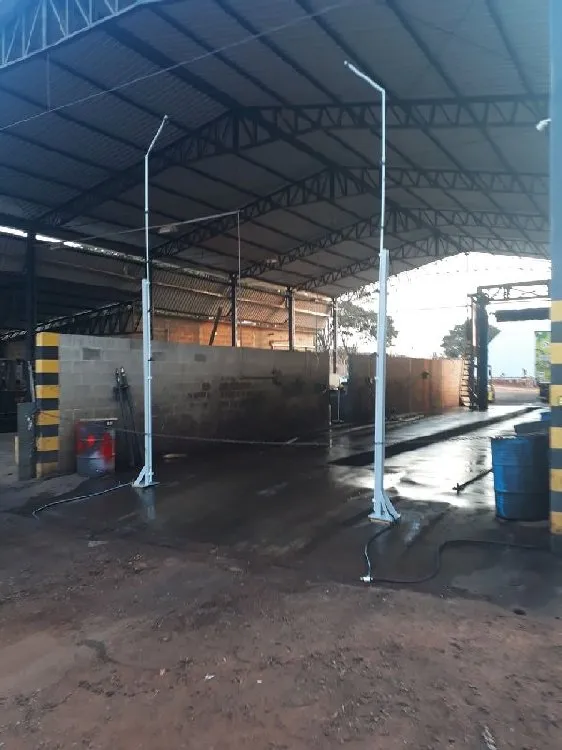 Equipamento desenvolvido para borrifar em forma de pulverização produto químico. Composto por conjunto de estrutura metálica devidamente dimensionada, com proteção contra corrosão em zincagem eletrolítica e pintura em poliester para sustentação de uma tubulação hidráulica contendo diversos bicos aspersores, que são alimentados por uma eletro bomba centrífuga com dispositivo de ajuste de vazão. O comando é feito através de um painel elétrico de controle para um funcionamento da bomba e a operação é feita através de acionamento por controle remoto ou botão pulsante.