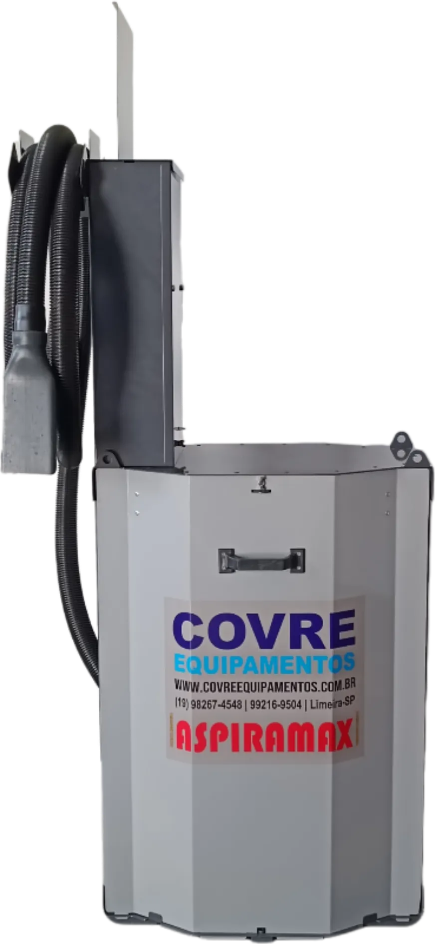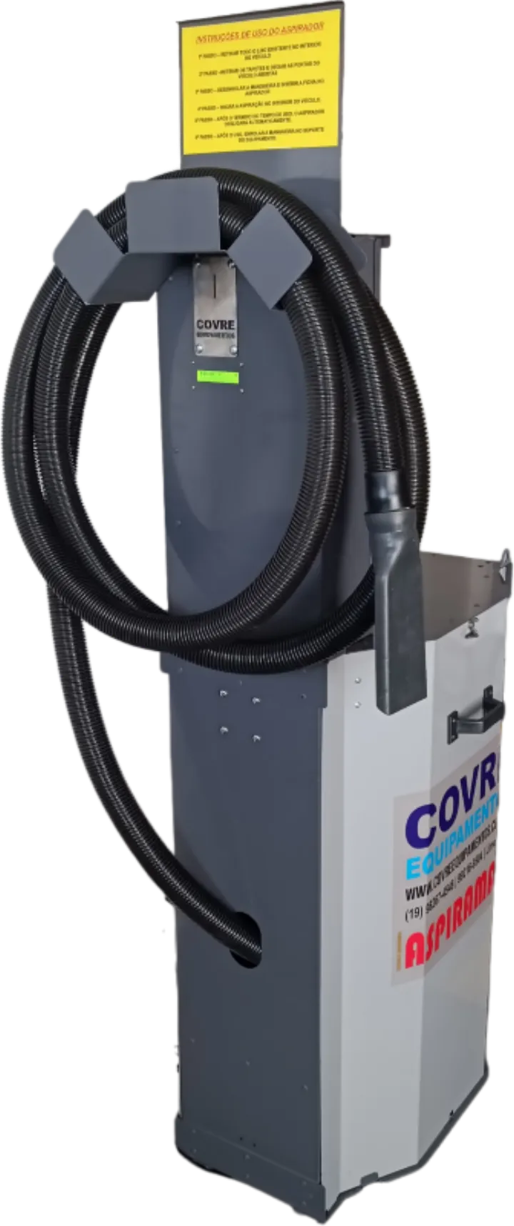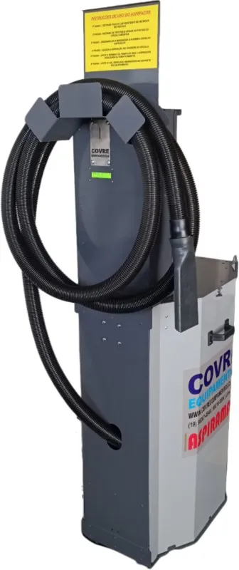 Equipamento destinado a aspiração self service de veículos em postos de combustíveis através da inserção de ficha e tempo de aspiração programado. Composto por gabinete robusto e arrojado com pintura poliéster e coloração a critério do cliente, mangueira de aspiração de 05 metros, contador de ciclos e de moedas e nível de ruído baixíssimo o menor do mercado.
