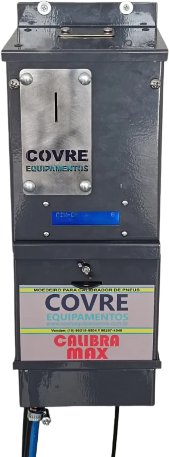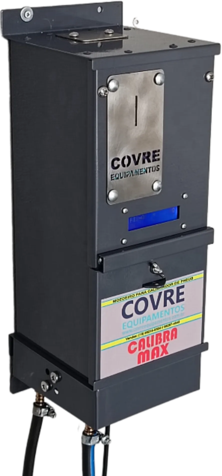 Aparelho composto por um gabinete compacto construído em chapa metálica zincada e pintada em poliéster eletrolítico especialmente projetado para abrigar internamente um mecanismo de funcionamento por fichas e controle remoto, um sistema eletrônico composto por uma placa eletrônica e outra placa eletrônica para controle remoto, desenvolvidos para;
