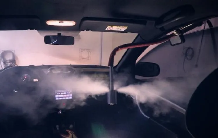 Equipamento para desinfecção e higienização de veículos automotivos, com aplicação em postos de serviços, redes de supermercados, empresas de locação de automóveis em geral, mais particularmente trata-se de um equipamento nebulizador através do sistema SAT (Sistema de Atomização Térmica) + (Sistema de Aspiração), com utilização self-service de fichas.